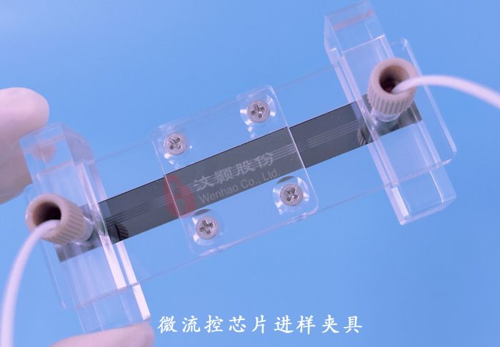为了方便给微流控芯片进样,解决微流控芯片进样时接口不耐压、易漏液、密封性能差等问题,汶颢股份可根据客户芯片图纸或芯片实物,设计微流控芯片进样夹具。若客户有夹具图纸,也可以直接发图纸给我们加工。