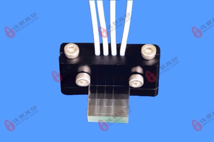 竖型夹具提供了一种和标准尺寸的微流控芯片快速、可靠的连接方式,我公司生产的竖型夹具,能够配合一系列的标准芯片使用。标准芯片厚度为4.0mm,宽度15.0mm,长度可以变化,加工不同长度的管路,完成特定功能。客户可以订购标准或者定制芯片,配合竖型夹具使用,从而完成一系列微流控单元操作,包括微液滴形成,多层液滴形成,溶液混合等等。