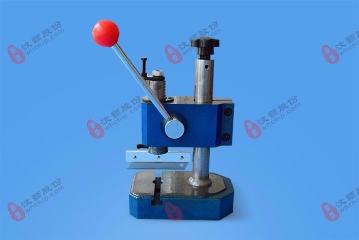 该款产品将刀头固定在台式打孔器上,刀头高度可调节,按压手柄可实现垂直裁切芯片。
